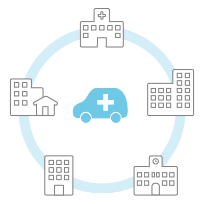 - 地域の総合病院や訪問看護ステーション等と広範なネットワークを築いており、そのネットワークの強化に努めます。